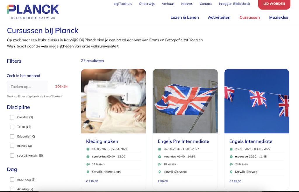 Kunst, cultuur en ontspanning komen samen bij Planck: het cultuurhuis van Katwijk. Ontwikkel en inspireer jezelf met een cursus, een boek, muziekles of voorstelling. Stap binnen voor een kop koffie en ontmoet anderen. Bij Planck ben je thuis.